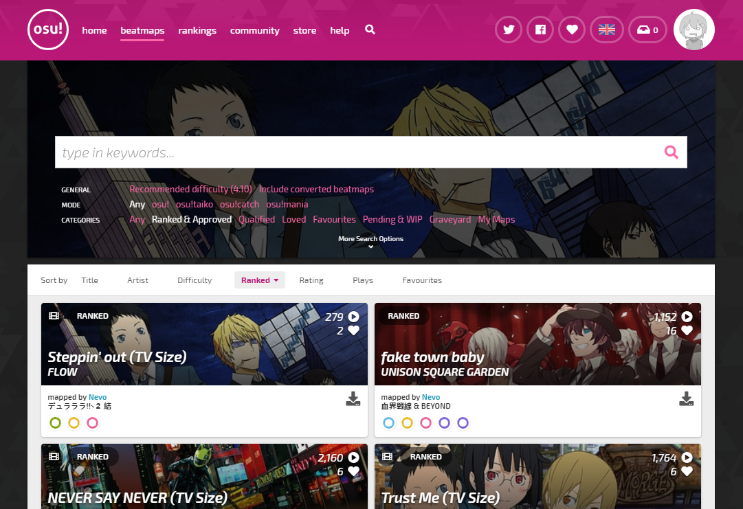 This website is where all the magic happens. You download beatmaps here and you can view stats here. Your best performances and recent plays all on here.